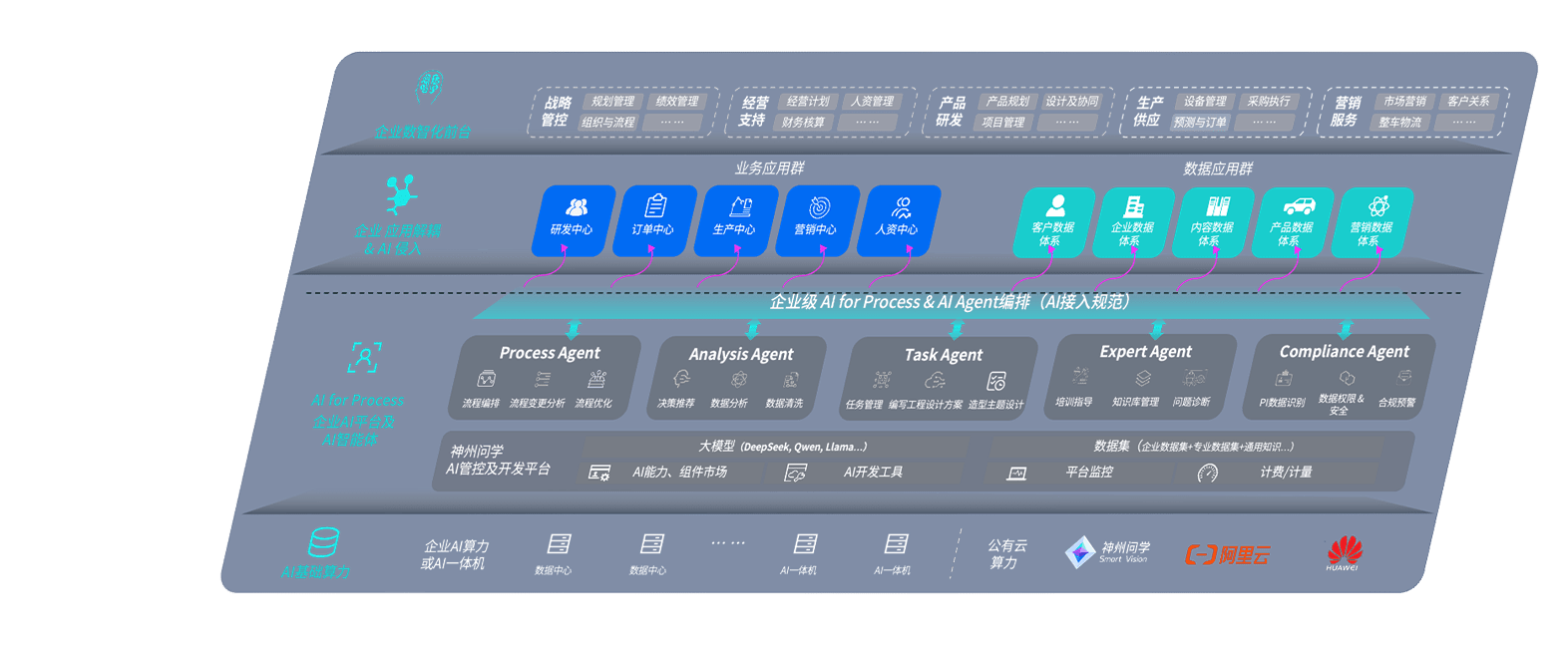 端到端的一站式AI工作空间深度融合了从企业战略规划到日常经营的全流程业务板块,,定向解决车企内部领域多、、、、部门多、、、链条长、、、、场景碎片化等难题,,,,支持车企快速构建以AI为核心的生产力写作体系,,,,实现任务执行与AI能力的无缝集成与交互